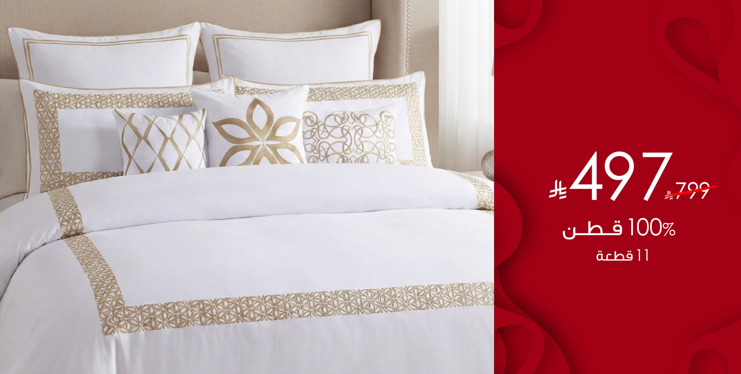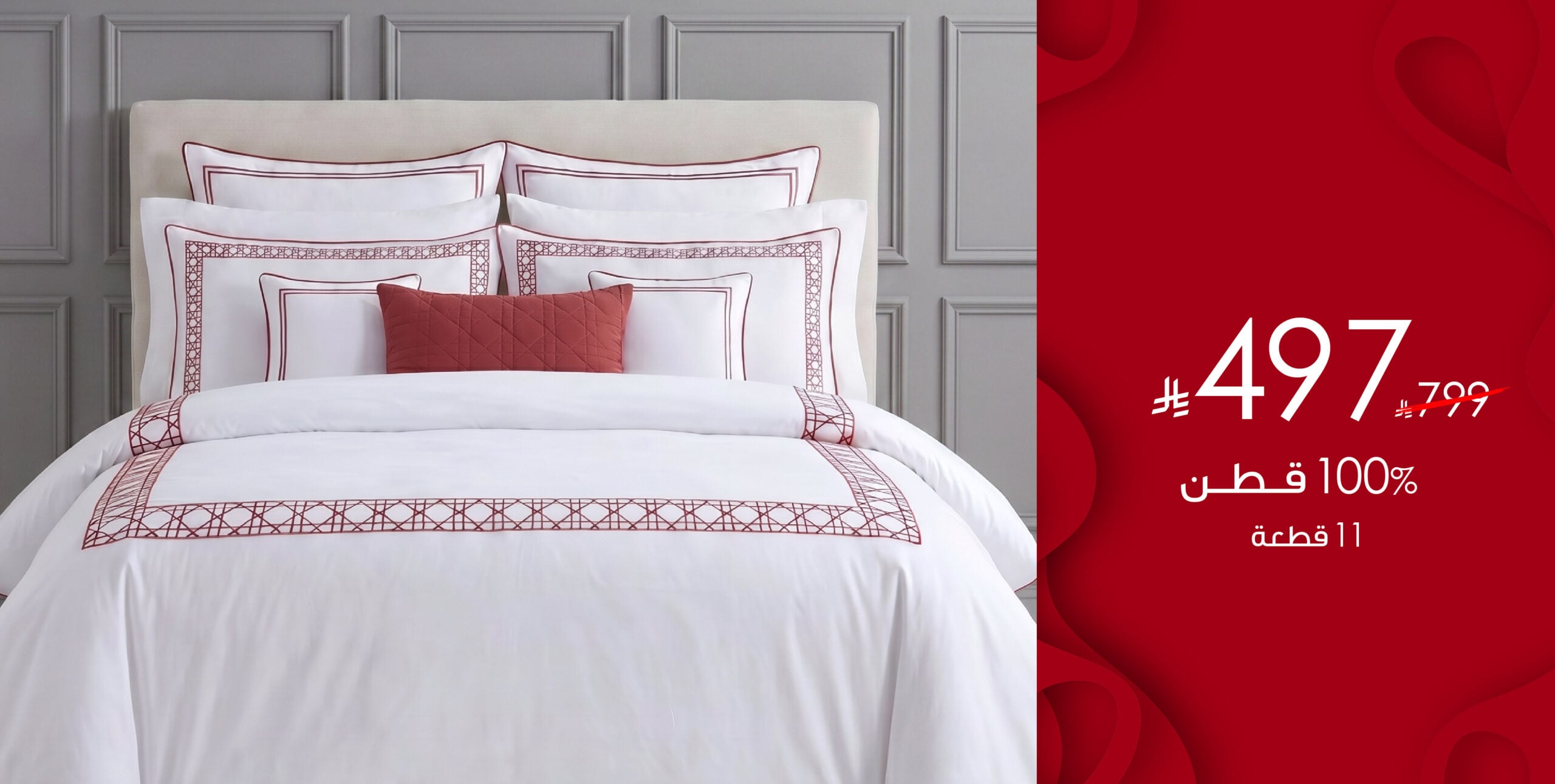 Fleur | طقم لحاف قطن 100% مزدوج مطرز 11 قطعة