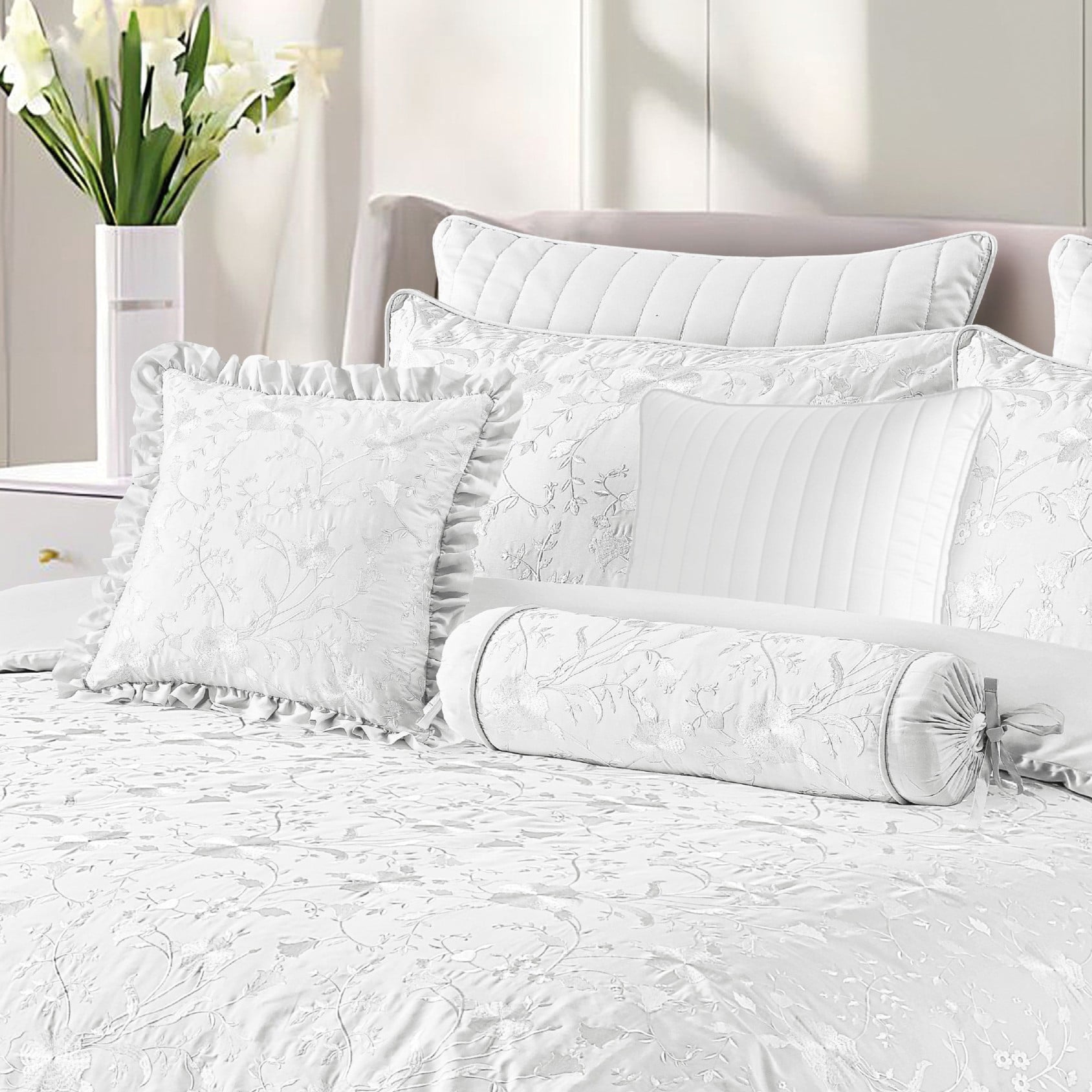 Amrosa | طقم لحاف قطن 100% مزدوج مطرز 11 قطعة