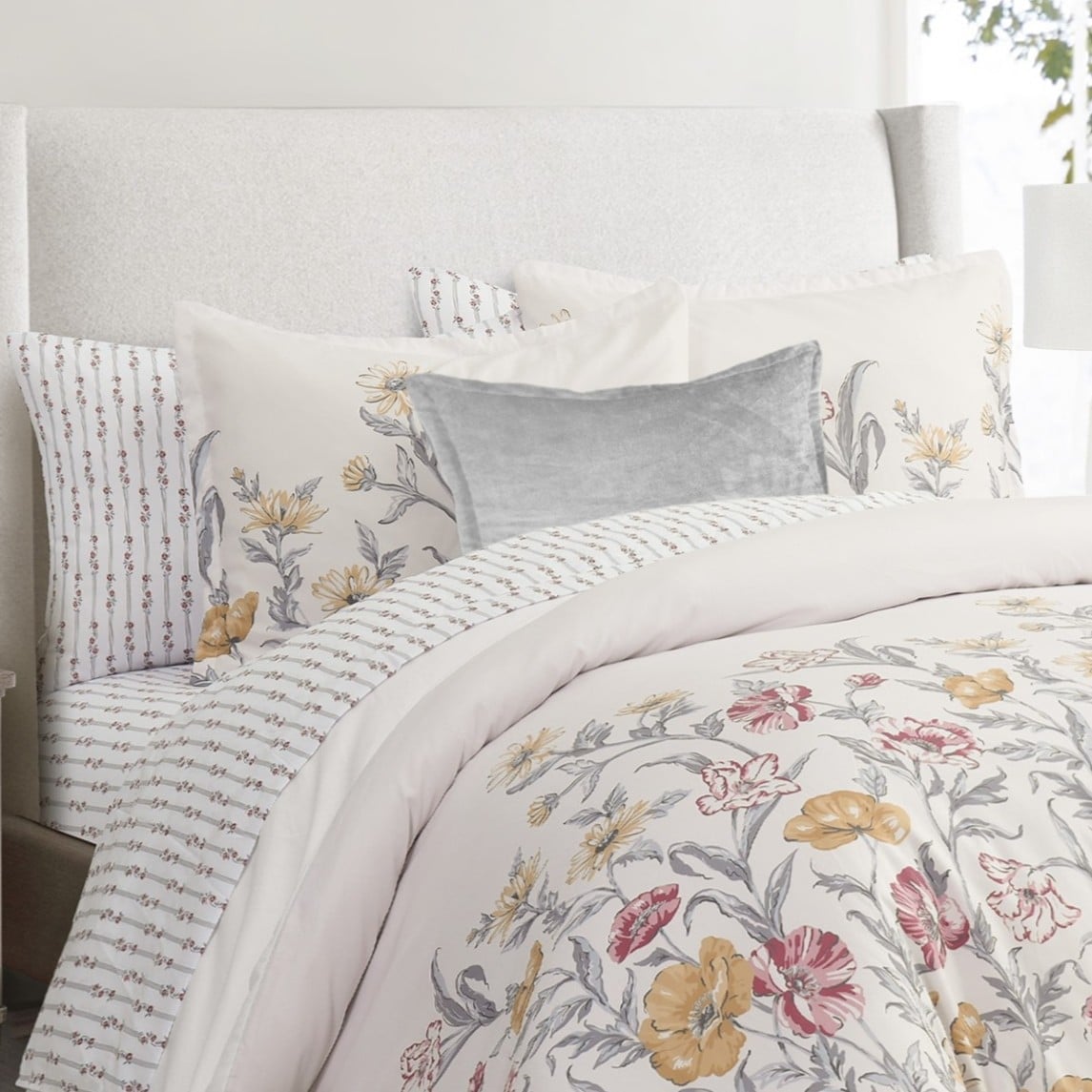 لحاف بنقشة زهور ناعمة بألوان هادئة، يضيف لمسة أناقة ورقي لغرفة نومك ويمنحك إحساسا بالراحة والدفء مع تصميم عصري يناسب مختلف الديكورات.