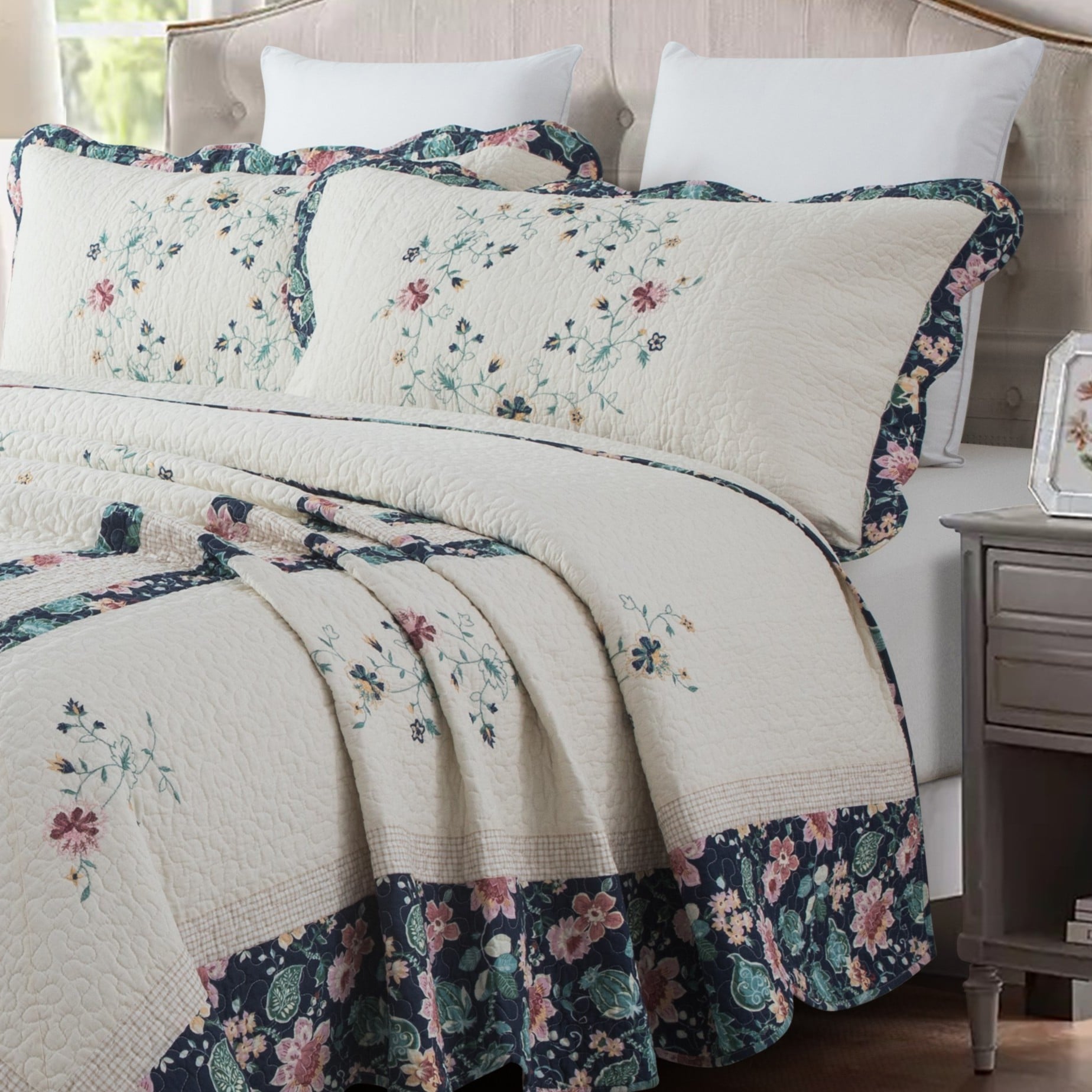 Floral | غطاء سرير قطن 100% مزدوج 3 قطع