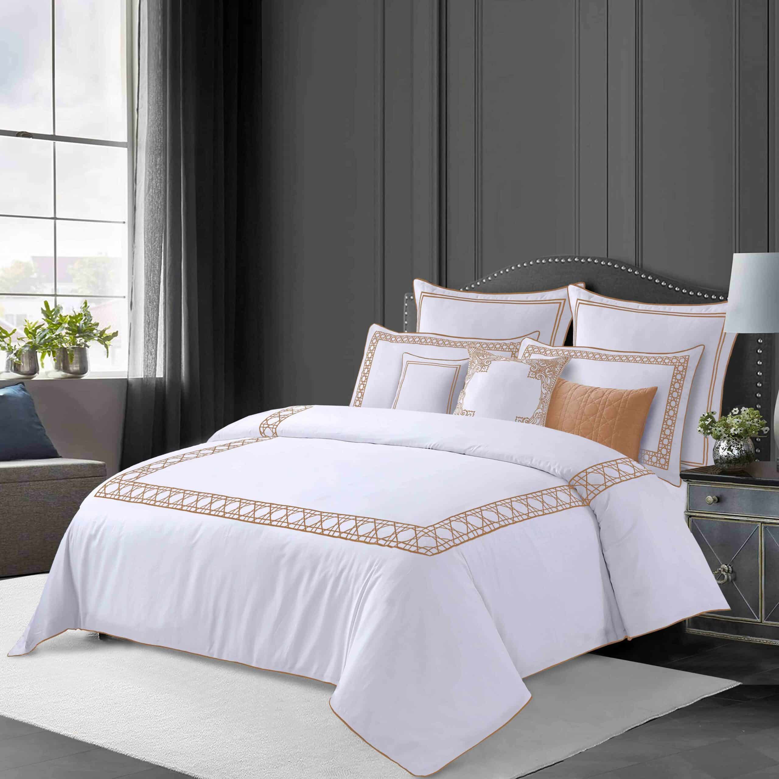 طقم مفرش سرير فندقي قطن Geometric نفرين 11 قطعة