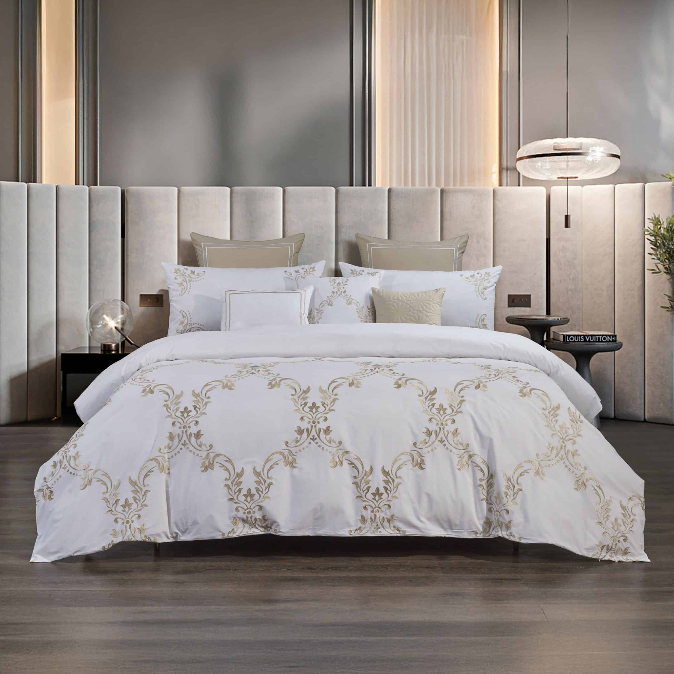 أضيفي لمسة ملكية بتطريز ذهبي لغرفة نومك مع طقم مفرش Gold Loki الفاخر