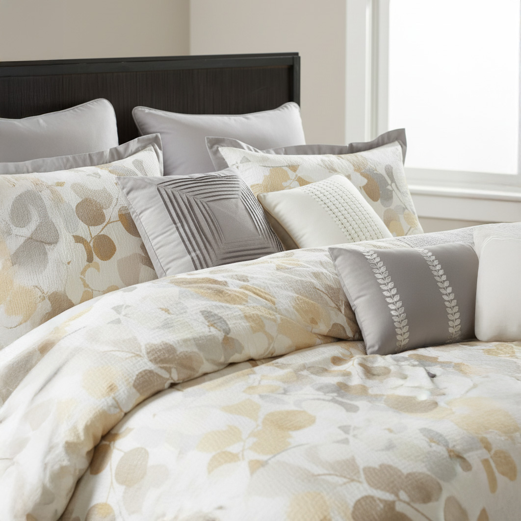 ارتق بأناقة غرفة نومك مع طقم المفرش Patia الذي يجمع بين الحداثة والانتعاش.