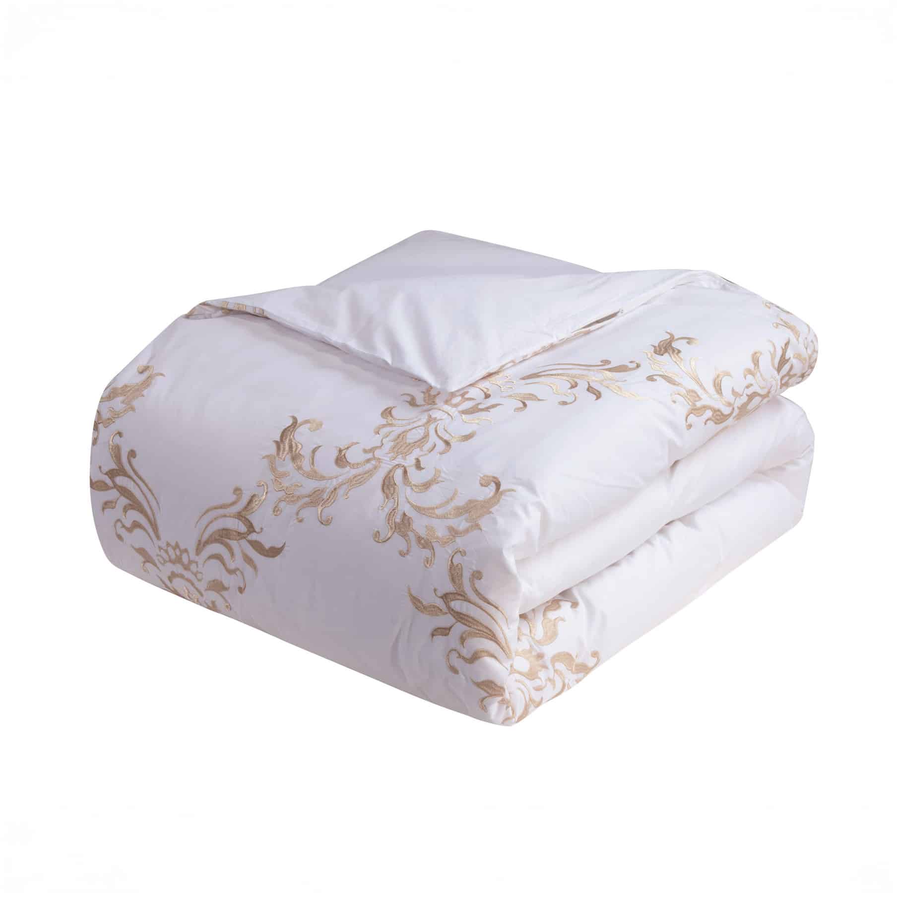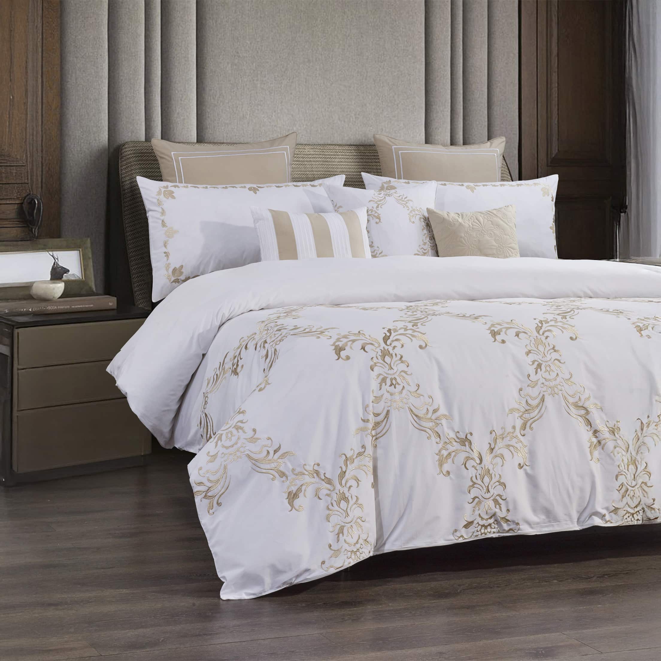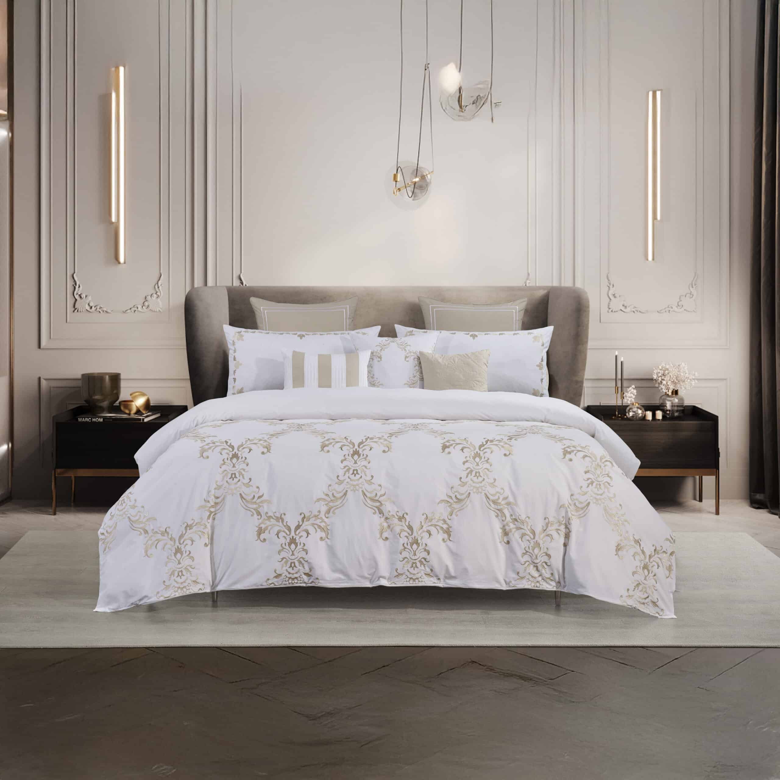امنحي غرفة نومك لمسة ملكية فاخرة مع طقم مفرش Vanloo بتطريز ذهبي أنيق.